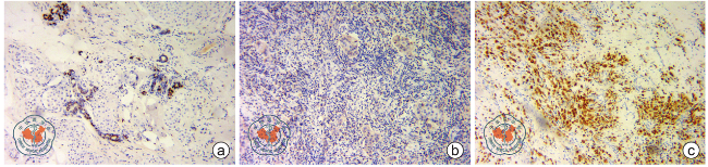| 阴性 | 16 | 5 | χ2=0.255 | 0.614 | 18 | 3 | χ2=3.728 | 0.054 | 18 | 3 | χ2=5.572 | 0.018 | |