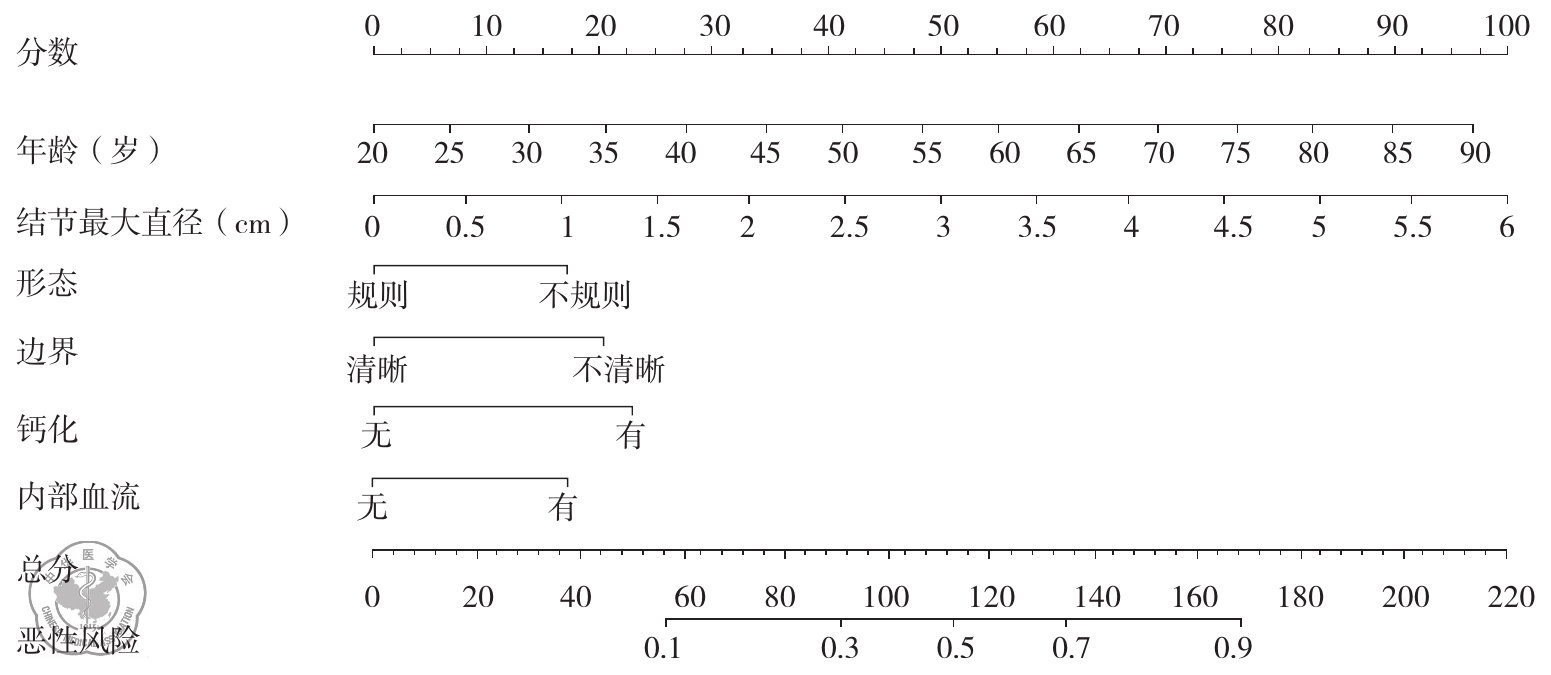 基于临床和超声特征建立的列线图模型可以准确预测BI-RADS 4类结节乳腺癌风险,从而减少不必要手术活组织检查。