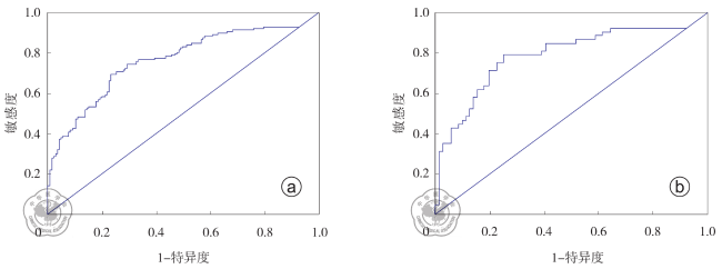 表4 训练组BI-RADS 4类结节乳腺癌发生风险的多因素Logistic逐步回归分析 |