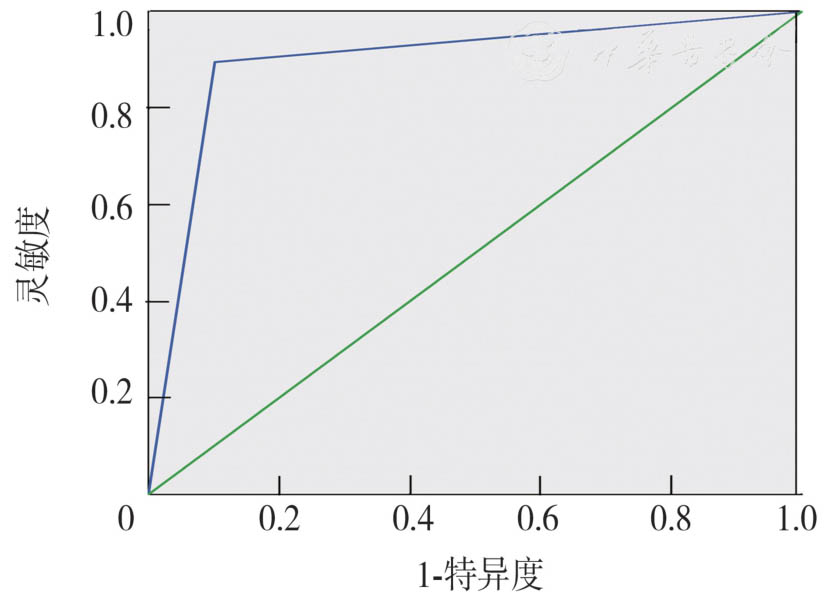 According to the MD classification,of the 617 cases of bloody nipple discharge,MD grade 1 was in 21 cases,MD grade 2 in 71 including 1 with malignancy,MD grade 3 in 386 including 9 with malignancy,MD grade 4 in 43 including 8 with malignancy,and MD grade 5 in 96 including 78 with malignancy. The sensitivity,specificity,PPV,NPV and accuracy of the MD classification were 89.6%,89.8%,61.9%,97.9% and 89.8%,respectively. The area under the ROC curve was 0.897,and the 95%CI was 0.859—0.935.