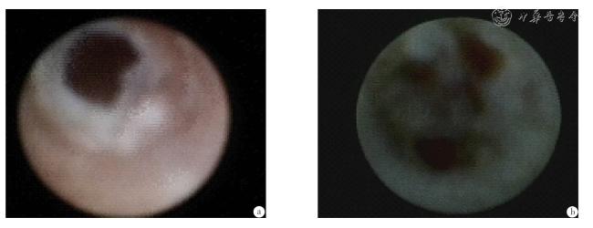 | 2级(典型良性征象) | 乳管扩张,管壁光滑或可见少量的出血斑,管腔内仅见少量血迹,无活动性出血,无末梢出血,考虑乳管炎 |
