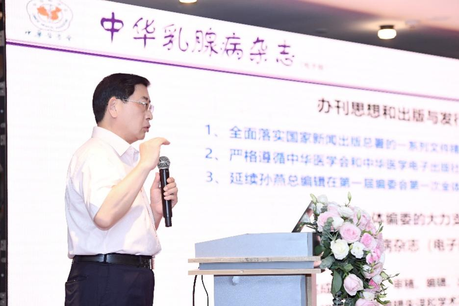 宋院士指出:《中华乳腺病杂志(电子版)》是国内唯一公开发行的乳腺病专业学术期刊,主要报道乳腺疾病领域领先的科研成果、临床诊断治疗技术和经验,介绍国内外乳腺病领域最新的发展趋势。近年来,期刊持续发展,每期主题紧跟学术前沿,发表论文质量显著提升,深受乳腺疾病相关专业医务和科研工作者的欢迎,在国内外的学术影响力不断提高。这些成绩的取得,离不开在座各位编委对编辑部工作的大力支持。希望在未来的日子里,各位专家能够一如既往地支持期刊的建设。